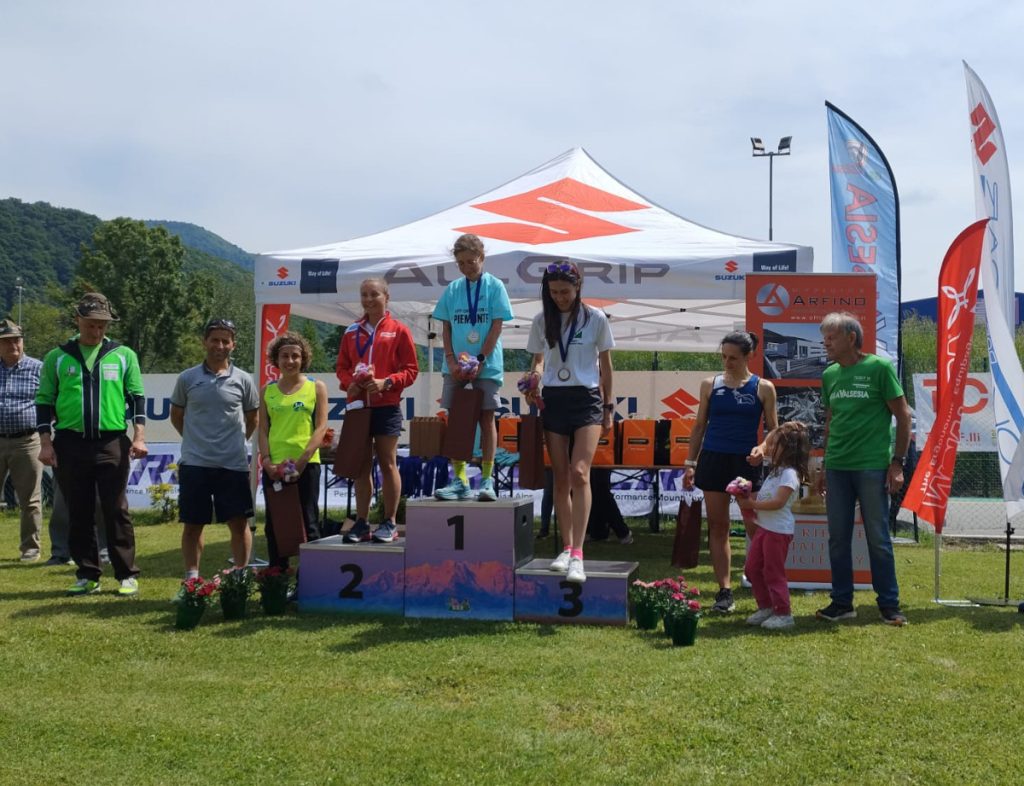 Prima donna a tagliare il traguardo è Erica Ghelfi (Pod. Valle Varaita) in 57’30” che conquista così il titolo regionale. Sul podio anche Francesca Foglio (Atl. Stronese-Nuova Nordaffari), seconda assoluta in 1h04’22” e campionessa regionale u23, e Alice Grandi (ASD Caddese) terza in 1h06’51”.