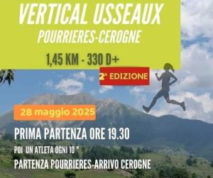 Ritrovo come al solito a partire dalle ore 18 presso il Forno di Borgata a Pourrieres e partenza del primo atleta alle ore 19,30, poi uno ogni 10″ come da consuetudine.